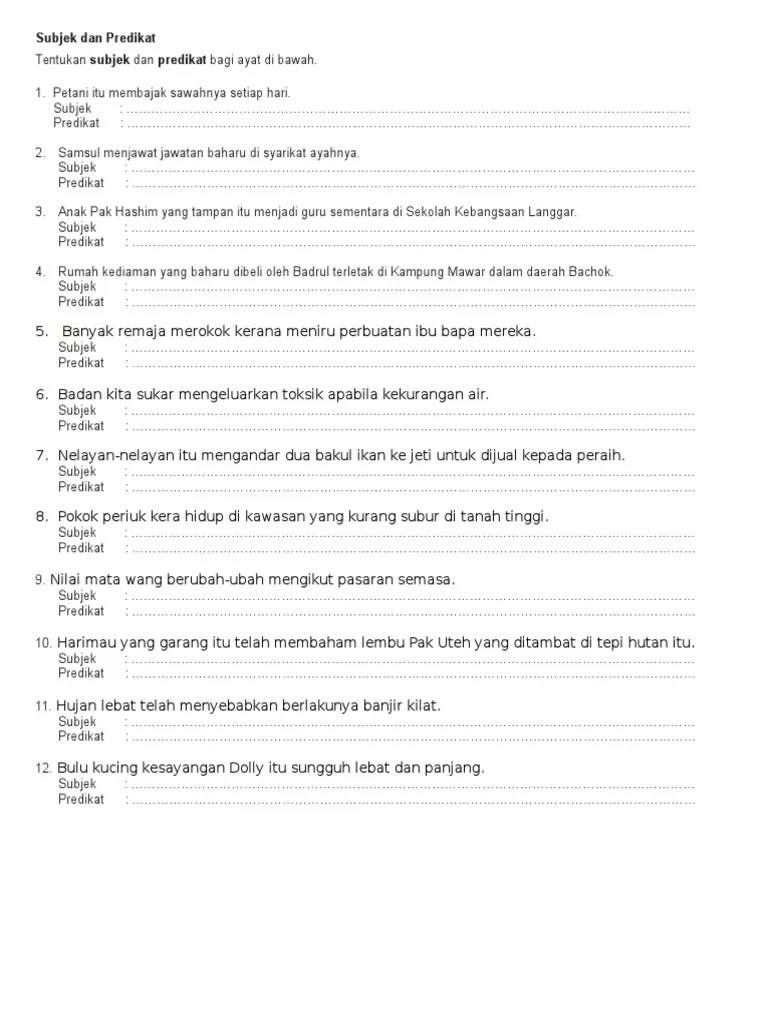 Latihan perbezaan kata kerja transitif dan tak transitif Latihan subjek dan predikat membuka kotak. Powtoon's animation templates help you create animated presentations and animated explainer videos from scratch. Latihan subjek dan predikat pt3 bahasa melayu untuk semakan pelajar tingkatan1, tingkatan 2 dan tingkatan 3. Pengajaran subjek dan predikat bagi menengah 1 ekspres.